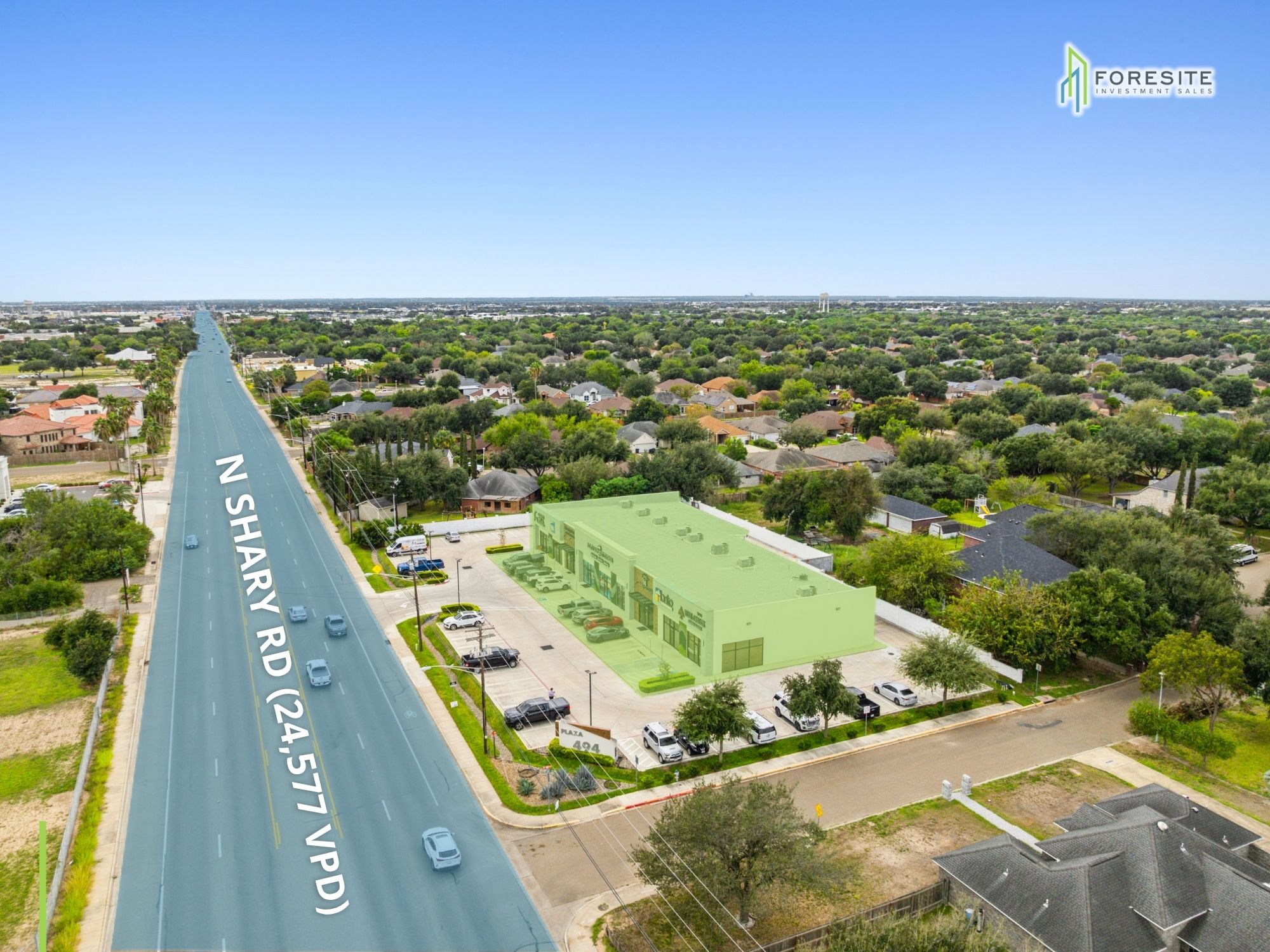 PLAZA 494 JadeNovember 10, 2025 PLAZA 494 2015 North Shary Road, Mission, TX, USA Price: $3,416,152 Occupancy: 100% Download Brochure Presented by Foresite Commercial Real Estate (210) 816-2734 Agents Chad Knibbe, CCIM® Principal, Co-Owner Alexandria Tatem Associate Vice President of Investment Sales and Head of Research Xavier Alvarado Investment Sales Associate Related Properties Available Former Taco Cabana 4622 Rittiman Road, San Antonio, Texas 78218, USA Created with Sketch. Available Boulders Rock Climbing Gym | For Sale 325 Indian Trail, Harker Heights, TX, USA Created with Sketch.